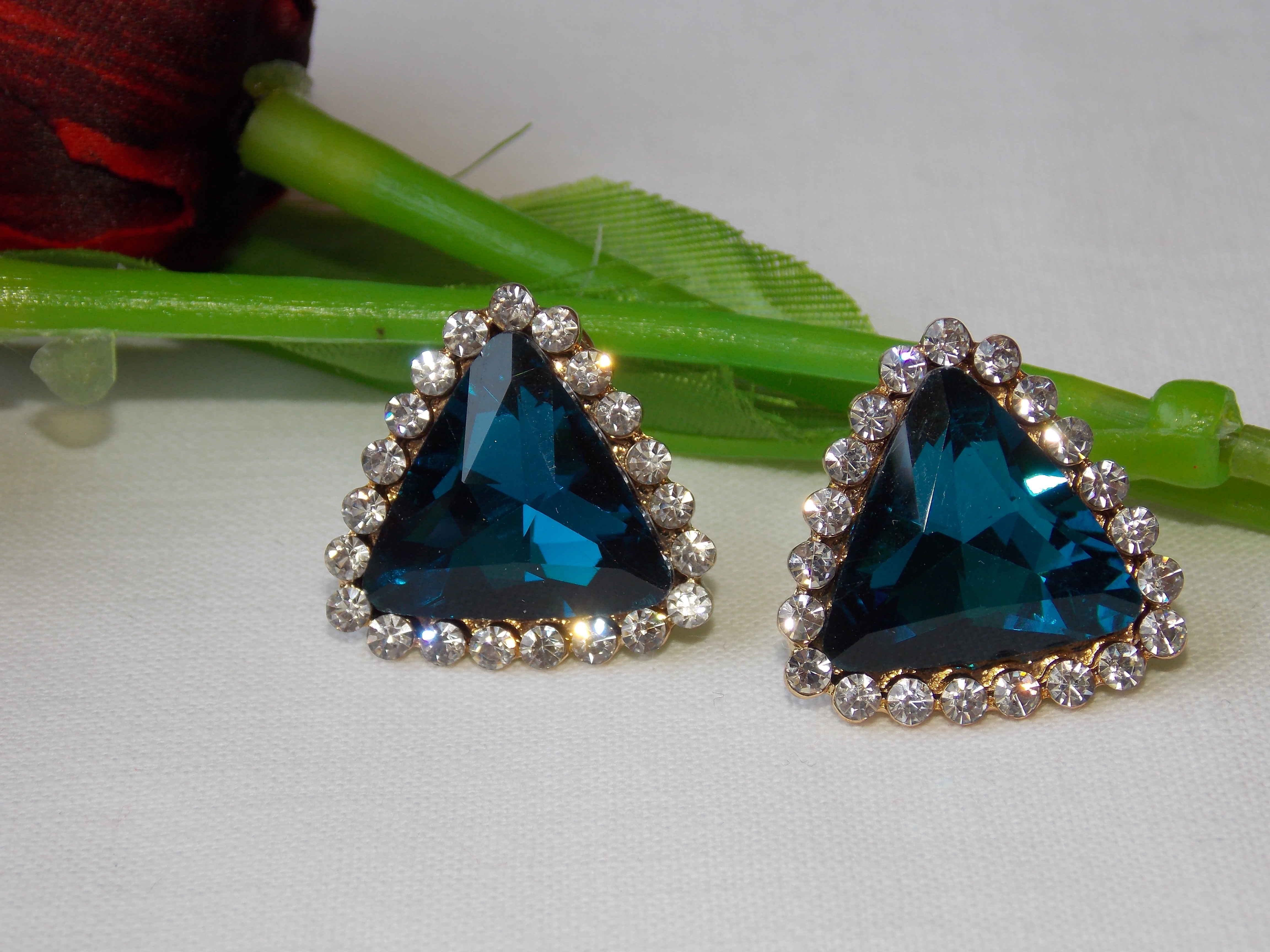 Náušnice z bižuterního kovu se skleněným kamenem.
